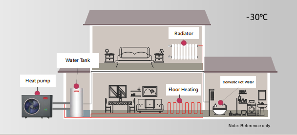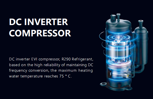Whether it’s freezing winter or hot summer, the R290 Small Heat Pump is designed to deliver year-round comfort. It handles heating, cooling, and domestic hot water with ease, adapting to the user’s needs seamlessly. This versatility is powered by its advanced DC inverter technology, which adjusts the compressor frequency dynamically, ensuring stable operation even in extreme weather conditions as low as -30°C.